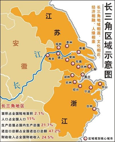 Chart: Schematic Diagram of the Yangtze River Delta Region Source: Xinhua News Agency