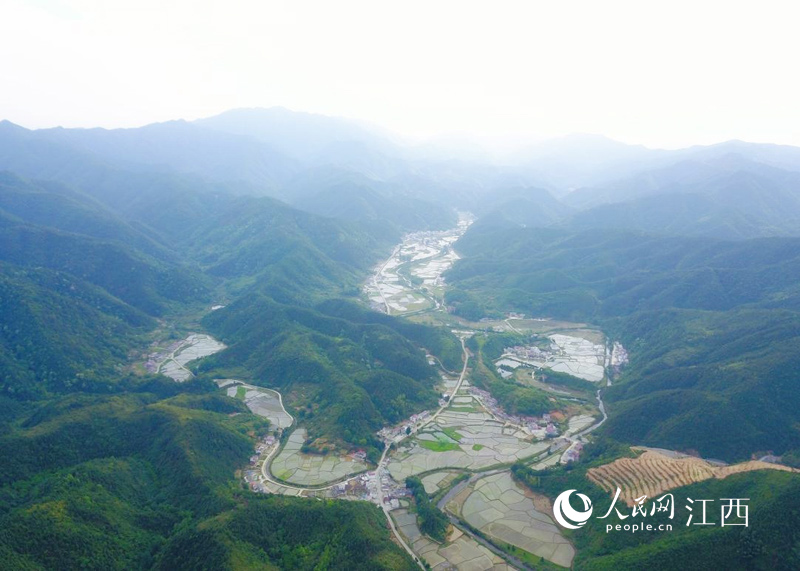 Overlooking Lingxia Village, Donggang Township, xiushui county, Jiujiang City, Jiangxi Province, the good ecological environment and living environment make the local people full of happiness. People’s Daily Online